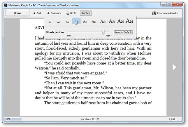Esses eBooks funcionam da mesma forma que os baixados da loja Kindle, e você pode alterar o tamanho da fonte e adicionar marcadores da mesma forma que outros eBooks.