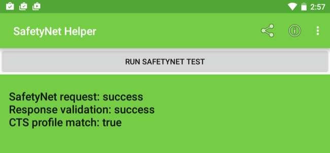A maioria dos aplicativos não verifica a API SafetyNet. Mesmo um aplicativo que verifica a API SafetyNet - como os aplicativos de teste acima - não para de funcionar se receber uma resposta ruim. O desenvolvedor do aplicativo deve verificar a API SafetyNet e fazer o aplicativo se recusar a funcionar se descobrir que o software do seu dispositivo foi modificado. O próprio app Android Pay do Google é um bom exemplo disso em ação.