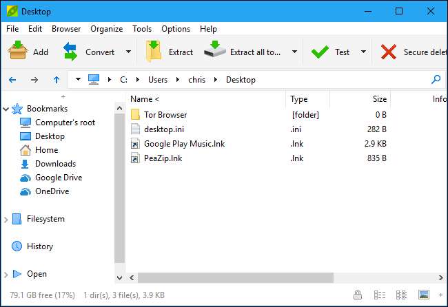 Você também pode abrir o aplicativo 7-Zip diretamente e usá-lo para navegar, extrair e criar arquivos.