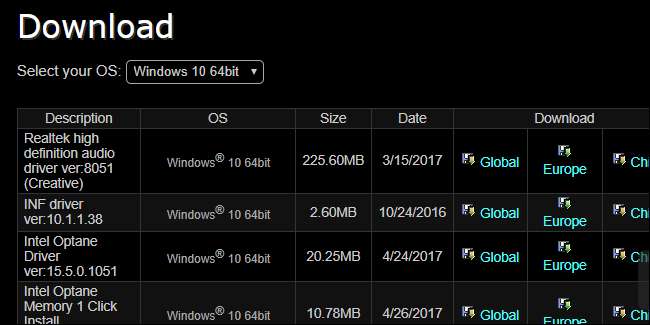 Para outros drivers, vá direto para o site do fabricante do hardware. Se você tiver um laptop ou um PC de mesa pré-construído, acesse o site do fabricante e procure a página de download do driver para o seu modelo específico de computador. Normalmente, você encontrará uma única página da web com uma longa lista de drivers para download. Novas versões desses drivers são postadas nesta página da web quando disponíveis, e você frequentemente verá as datas em que foram carregadas para saber quais são as novas.