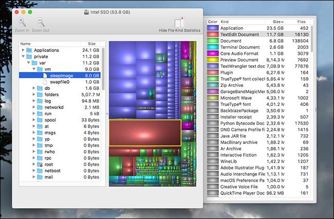 - Se você tiver muita RAM, há um grande arquivo chamado “sleepimage”. O conteúdo da sua memória é gravado neste arquivo quando o Mac hiberna e, se você excluir este arquivo, ele voltará mais tarde. Não tive sorte ao desativar esse recurso no macOS Sierra.