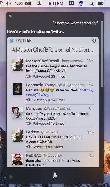 Alternativ, îi puteți oferi lui Siri întrebări și comenzi mai directe, cum ar fi „Căutați pe Twitter instrucțiunile Geek” sau „Găsiți tweet-uri cu hashtag-ul GeekLife” sau pur și simplu să-i întrebați ce se întâmplă în orașul sau zona dvs.