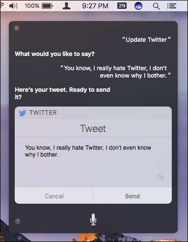 Totuși, asta nu este tot. De ce să ne oprim la tendințele de pe Twitter? Treceți în luptă prin actualizarea conturilor de socializare cu Siri.