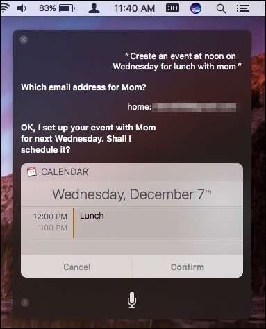 Același lucru este valabil și pentru stabilirea programărilor. Spune-i lui Siri ceva de genul „Creează un eveniment miercuri pentru‘ Prânz la prânz cu mama ’” și îl va adăuga în Calendarul tău.