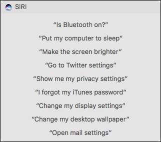 Nu e tot ce îi poți cere lui Siri și ești încurajat să te joci cu el. Dacă doriți o idee mai bună despre toate lucrurile pe care le poate face Siri pe macOS, deschideți-l și întrebați-vă „Ce vă pot întreba?” Siri va răspunde cu o listă lungă de categorii care vă vor oferi cu siguranță câteva locuri minunate de început.