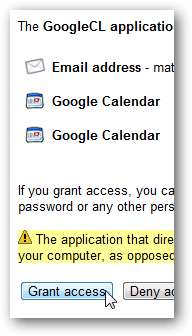Clic Primește acces în pagina web care se deschide, apoi apăsați Enter în fereastra GoogleCL.