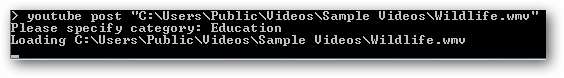 Introduceți un nume de categorie atunci când vi se solicită, iar GoogleCL va începe să vă încarce videoclipul pe YouTube. Ca de obicei, aceasta va dura câteva minute, în funcție de dimensiunea videoclipului dvs., dar este totuși mai rapid decât să accesați pagina YouTube pentru a posta un videoclip.