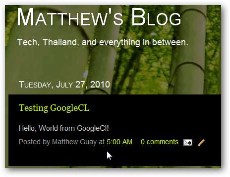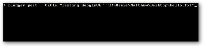 GoogleCL transformă Blogger într-un serviciu de blogging mai geekier. Puteți examina, eticheta și chiar crea postări noi pe Blogger, toate direct din linia de comandă. Puteți scrie corpul postării dvs. într-un fișier text și puteți folosi chiar marcaj HTML pentru a face postarea să arate așa cum doriți. Pentru aceasta, introduceți următoarele în GoogleCL:
