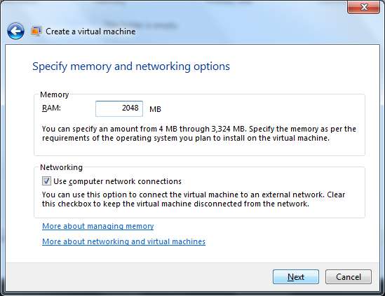 În fereastra următoare, puteți selecta cantitatea de memorie RAM pentru a aloca mașinii dvs. virtuale.