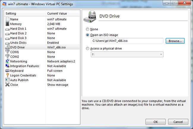 În ferestrele de setări, puteți specifica unde se află discul de instalare pentru noul dvs. sistem de operare pentru al instala în noua mașină virtuală.