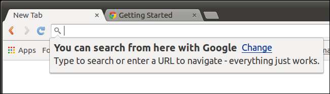 Se afișează pagina „Filă nouă” și apare un mesaj care vă spune că puteți utiliza bara de adrese atât pentru a căuta, cât și pentru a introduce adrese URL pentru a naviga către site-uri web.