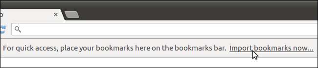 Dacă ați ales să nu vă sincronizați articolele din contul dvs. Google, puteți alege să importați marcaje și setări dintr-un alt browser, cum ar fi Firefox, sau doar marcajele dvs. dintr-un fișier HTML Marcaje (de obicei exportat dintr-un alt browser). Pentru aceasta, faceți clic pe linkul „Importați marcaje acum ...” din partea de sus a paginii inițiale „Filă nouă”.