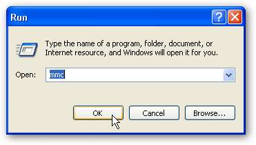 Deși este ușor în Windows 7, XP devine puțin mai complicat. Mai întâi accesați Start \ Run și tastați mmc și Enter.