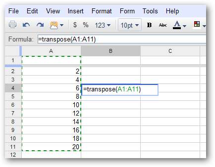 = TRANSPUNE (A1: A11)