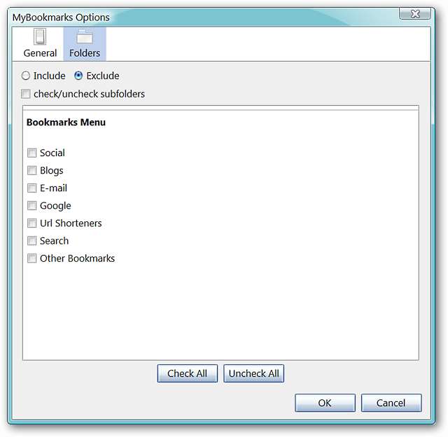 Aici puteți selecta personal folderele (și subfolderele) pe care doriți să le includeți sau să le excludeți în pagina MyBookmarks ( categoric frumos! ).