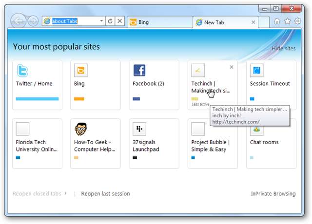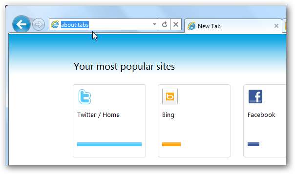 În mod implicit în Internet Explorer 9, veți vedea o listă cu cele mai populare site-uri atunci când deschideți o filă nouă. Aceste site-uri vor fi listate în funcție de frecvența cu care le vizitați și vă vor permite să accesați rapid site-urile pe care le accesați deja cel mai mult.