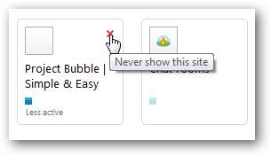 Sau, dacă preferați să nu vedeți deloc site-urile dvs. cele mai frecvent vizitate, faceți clic pe Ascundeți site-urile link din partea dreaptă sus a paginii Filă nouă.