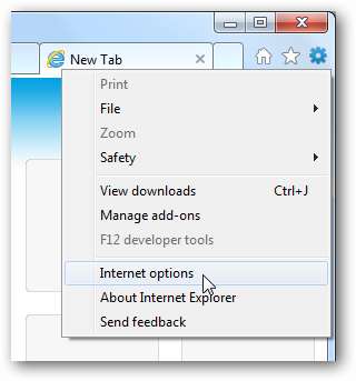 Dacă preferați să schimbați pagina Filă nouă, faceți clic pe butonul roată din extrema dreaptă a ferestrei și selectați optiuni de internet .