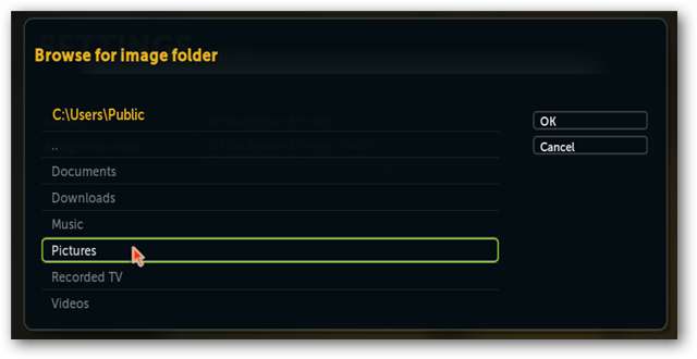 Dacă alegeți un folder, Boxee se va roti prin imaginile din folder. Pentru a seta folderul Imagini de fundal, selectați acea opțiune.