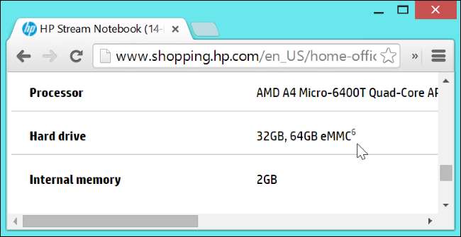 Nu toate stocările în stare solidă sunt la fel de rapide ca un SSD. „EMMC” este tipul de stocare flash pe care îl veți găsi pe tablete și laptopuri ieftine. Este mai lent și mai ieftin decât un SSD tradițional pe care l-ați găsi pe computere mai scumpe.