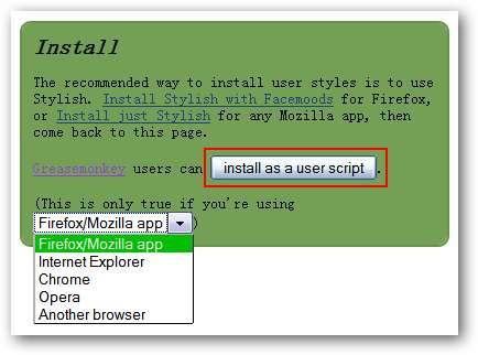 Ca mai sus, avem combinația Firefox / Greasemonkey la locul de muncă, așa că am instalat-o ca un script de utilizator.