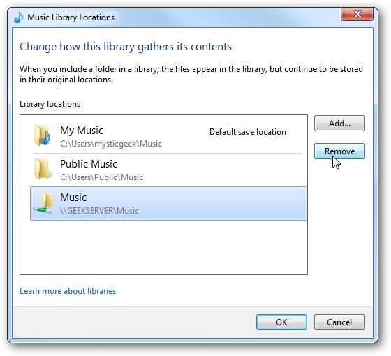 Dacă media dvs. este stocată într-o altă locație, cum ar fi pe un server, atunci puteți adăuga acest lucru în bibliotecă. Vă rugăm să rețineți că acest lucru adaugă locația la biblioteca dvs. la nivel de sistem, nu doar la playerul Zune.