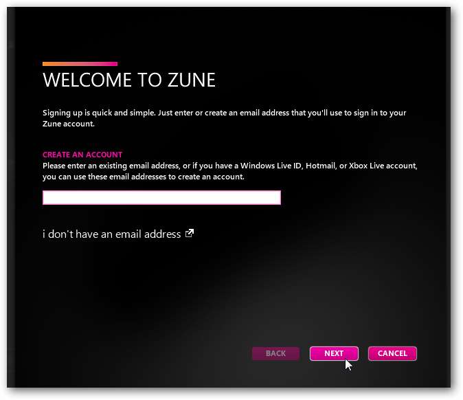 Crearea unui cont nou este rapidă și simplă, iar dacă sunteți nou în Zune, puteți încerca gratuit o încercare de 14 zile a Zune Pass dacă doriți.