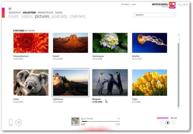 Zune funcționează, de asemenea, ca un vizualizator frumos pentru imaginile de pe computer.
