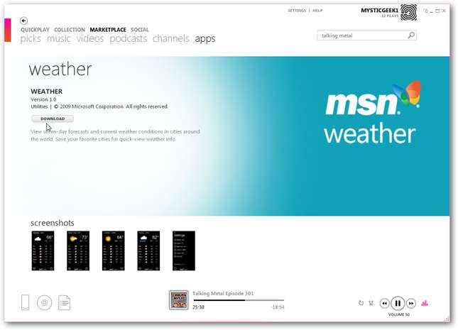 Iată fereastra de informații detaliate pentru aplicația meteo. Faceți clic pe Descărcare pentru ao adăuga pe dispozitivul dvs.