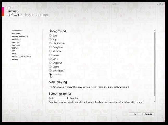 De asemenea, puteți personaliza aspectul Zune cu o varietate de fundaluri moderne și degradeuri.