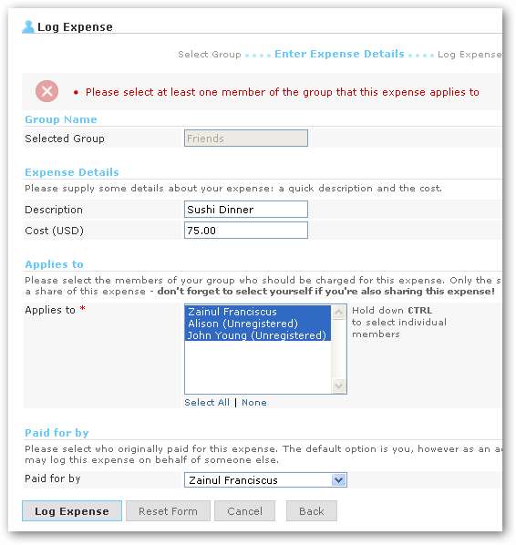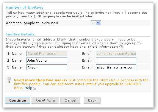 IOWE Veți prezenta un formular simplu de editare de grup pentru a lista persoanele cu care împărțiți cheltuielile.