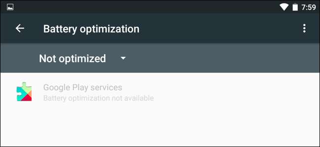 Veți vedea o listă de aplicații care nu sunt optimizate. Cu siguranță veți vedea Servicii Google Play aici. Este posibil să vedeți, de asemenea, unele aplicații de sistem furnizate de producător care necesită capacitatea de a rula în fundal.