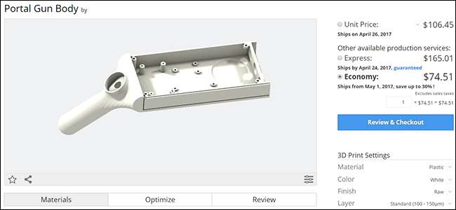 Imprimările 3D de la Shapeways sunt realizate la comandă. De când compania utilizează imprimante de calitate industrială care poate face sute de modele simultan, prețurile sunt relativ mici pentru ceea ce primiți. Pentru amprente simple, din plastic, puteți cheltui doar 10 USD pentru figurinele de bază . Chiar și unele bijuterii din metal sau brelocuri pot fi de la 25 USD , deși metalul este evident mai costisitor decât plasticul. În general, cu cât este mai mare tipăritul, cu atât va fi mai scump. Cu toate acestea, va trebui să alegeți ceva destul de mare pentru a rivaliza cu costul achiziționării unei imprimante 3D care poate imprima la o calitate comparabilă.
