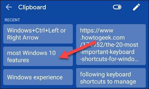 Acest lucru va deschide clipboard-ul și veți vedea articolul recent copiat în partea din față a listei. Pur și simplu atingeți oricare dintre opțiunile din clipboard pentru al lipi în câmpul de text.