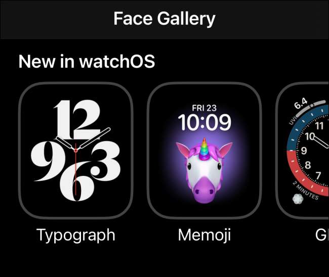 Veți vedea apoi fețe de ceas noi în partea de sus și o listă a tuturor fețelor de ceas disponibile. Ceea ce este cool este că galeria feței arată de fapt variații ale aceluiași fețe de ceas cu culori și complicații diferite.
