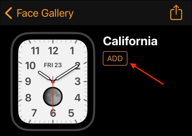 Odată ce sunteți gata, atingeți butonul "Adăugați". Veți vedea o animație care ia fața de ceas și o adaugă la fila "ceasul meu".
