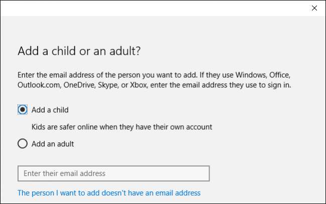 În Windows 10, veți dori să deschideți Setările, apoi Conturile și să faceți clic pe „Familia și alți utilizatori”, apoi să faceți clic pe „Adăugați un membru al familiei”.