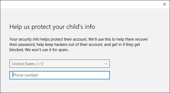 Pentru a proteja mai bine securitatea contului copilului dvs., va trebui să introduceți un număr de telefon. În acest fel, dacă nu puteți accesa vreodată contul, cum ar fi dacă este spart sau uitați parola, puteți primi un cod pe telefon care vă va permite să îl resetați.