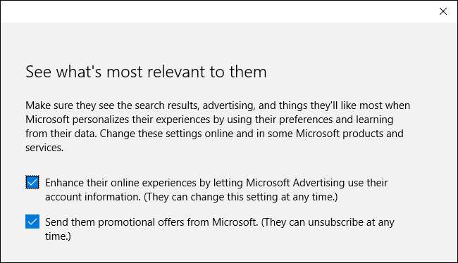 În ecranul următor, debifăm aceste casete. Depinde în totalitate de dvs., dar având în vedere că acesta este contul unui copil, nu considerăm că una dintre aceste opțiuni este deosebit de relevantă.