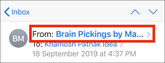 Pentru a începe, deschideți aplicația „Mail” și găsiți un e-mail de la expeditor pe care doriți să îl blocați. Apoi, atingeți fotografia de profil pentru a dezvălui detaliile expeditorului.