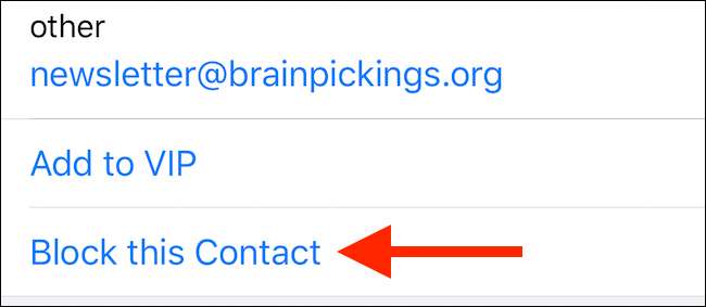 Dacă faceți acest lucru, se va deschide cardul de contact al expeditorului. De aici, atingeți „Blocați acest contact”.