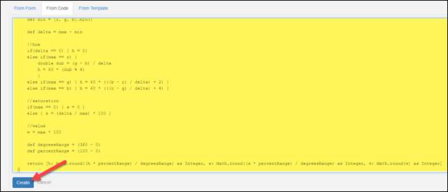 Acum, vom instala a doua parte a SmartApp. Copiați toate cod din această pagină , lipiți-l în caseta de text, apoi faceți clic pe "Creați".
