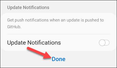 Dacă doriți să primiți notificări atunci când există o actualizare pentru SmartApp, comutați-on opțiunea "Actualizare notificări" și apoi apăsați "Efectuat".