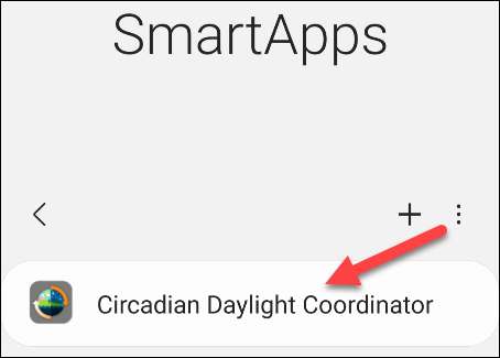 Acum ați configurat cum va funcționa SmartApp. Următorul pas este să-i spuneți care luminează controlul. Atingeți "Coordonatorul zidului de circadian" în secțiunea "SmartApps".