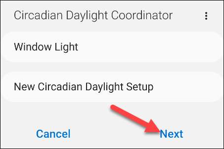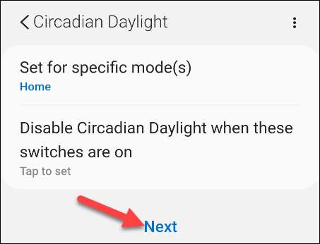 Pentru a salva ceea ce tocmai ați făcut, va trebui să treceți prin setările "Circadian Daylight" încă o dată; Doar atingeți "Următorul" pentru a trece prin toate.