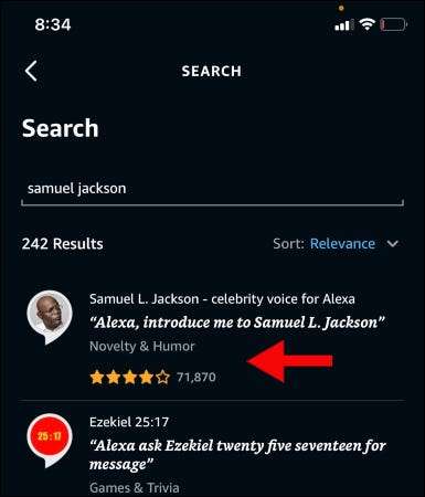 Pentru a schimba vocea lui Alexa la o celebritate, va trebui să descărcați abilitățile respective ale celebrității de pe site-ul Amazon. De exemplu, dacă doriți să schimbați vocea lui Alexa către Samuel L. Jackson, vizitați Samuel L. Jackson Voice Page , faceți clic pe "Cumpărați acum cu 1-clic" și sincronizați-l automat la profilul Amazon Alexa din cont pe cont.