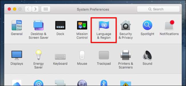 Începeți prin deschiderea panoului „Limbă și regiune” din Preferințele sistemului.