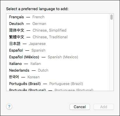 Dacă doriți să adăugați o limbă, faceți clic pe simbolul „+” din partea de jos a panoului pentru limbile preferate.