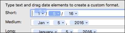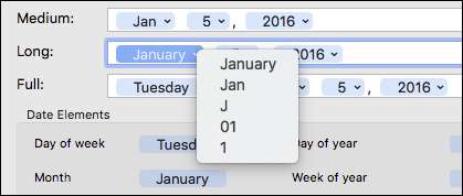 Deci, să presupunem că vrem să schimbăm formatul nostru lung de dată de la afișarea numelui complet al lunii la formatul scurtat. Facem clic pe săgeata de lângă „Ianuarie” și apoi alegem stilul de format, cum ar fi „Jan” sau „J”.
