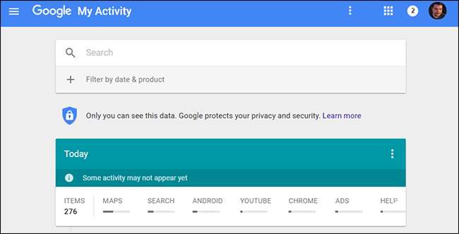 Istoricul dvs. cu Căutarea Google, împreună cu toate celelalte servicii Google pe care le utilizați, cum ar fi Android, browserul Chrome și YouTube, sunt stocate în pagina Activitatea mea. Mergi la myactivity.google.com și puteți vedea mai mult sau mai puțin tot ce ați făcut despre care Google știe. Nu vă faceți griji, sunteți singurul utilizator care are acces la aceste lucruri - Google anonimizează datele pe măsură ce le folosește pentru a difuza reclame și a analiza tendințele.